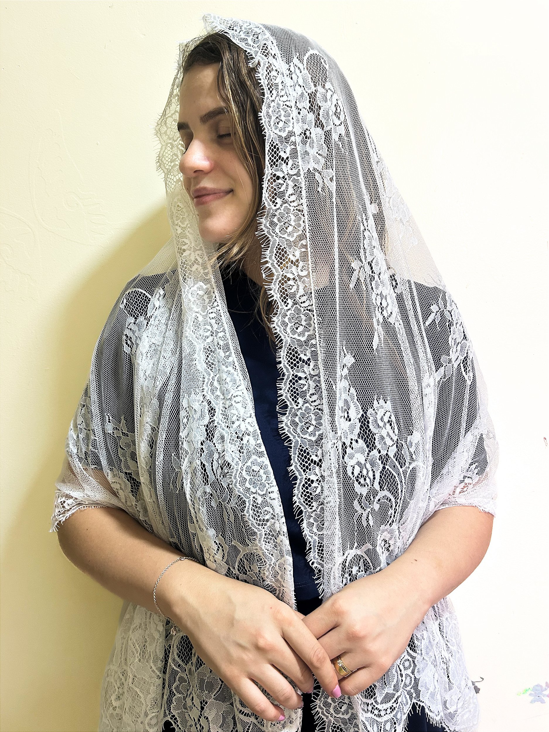 Véu em renda chantilly tamanho grande echarpe